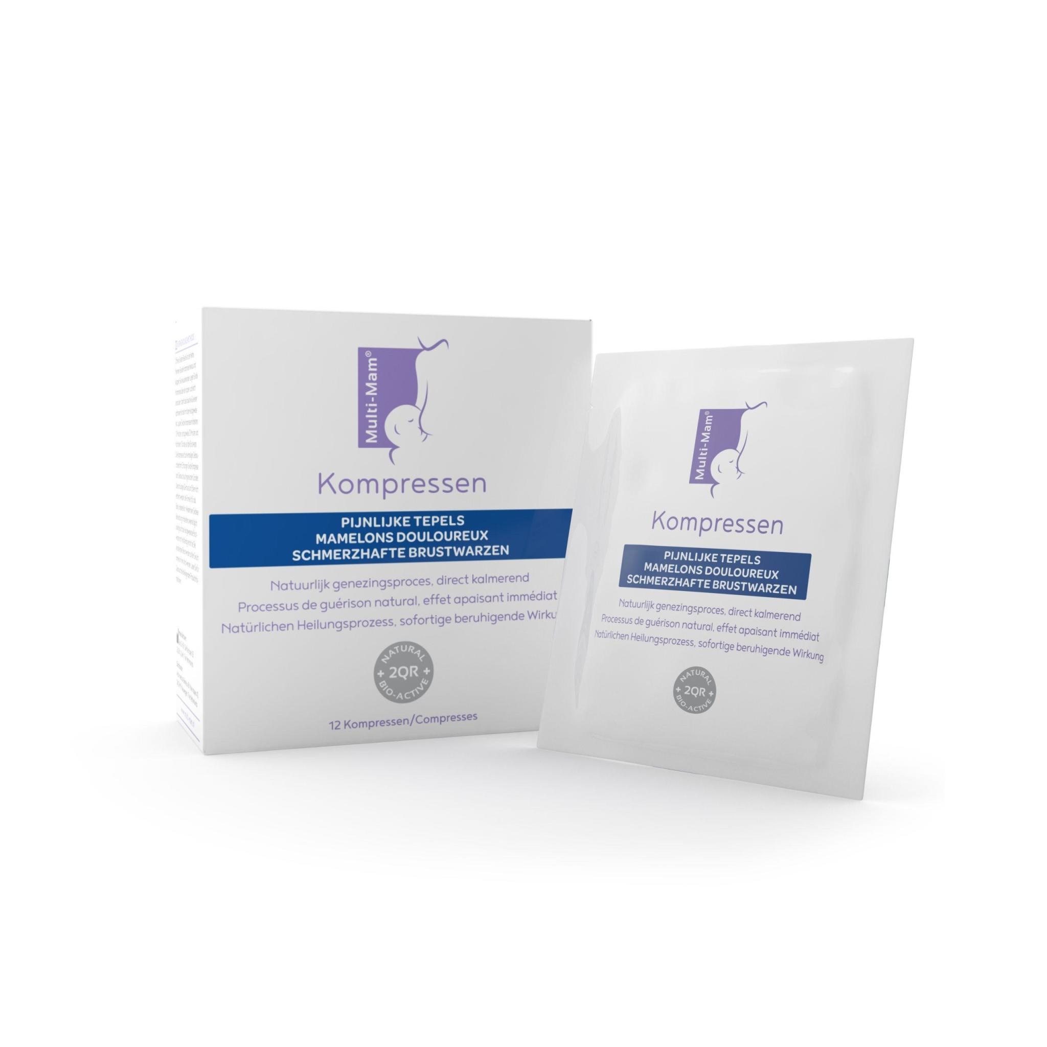 - Elk Kompres is apart verpakt in een sachet. Geschikt voor eenmalig gebruik. De sachets zijn per 12 verpakt in een doosje. De Kompres 3x per dag verschonen en ongeveer 10-15 minuten op je tepel leggen. \n