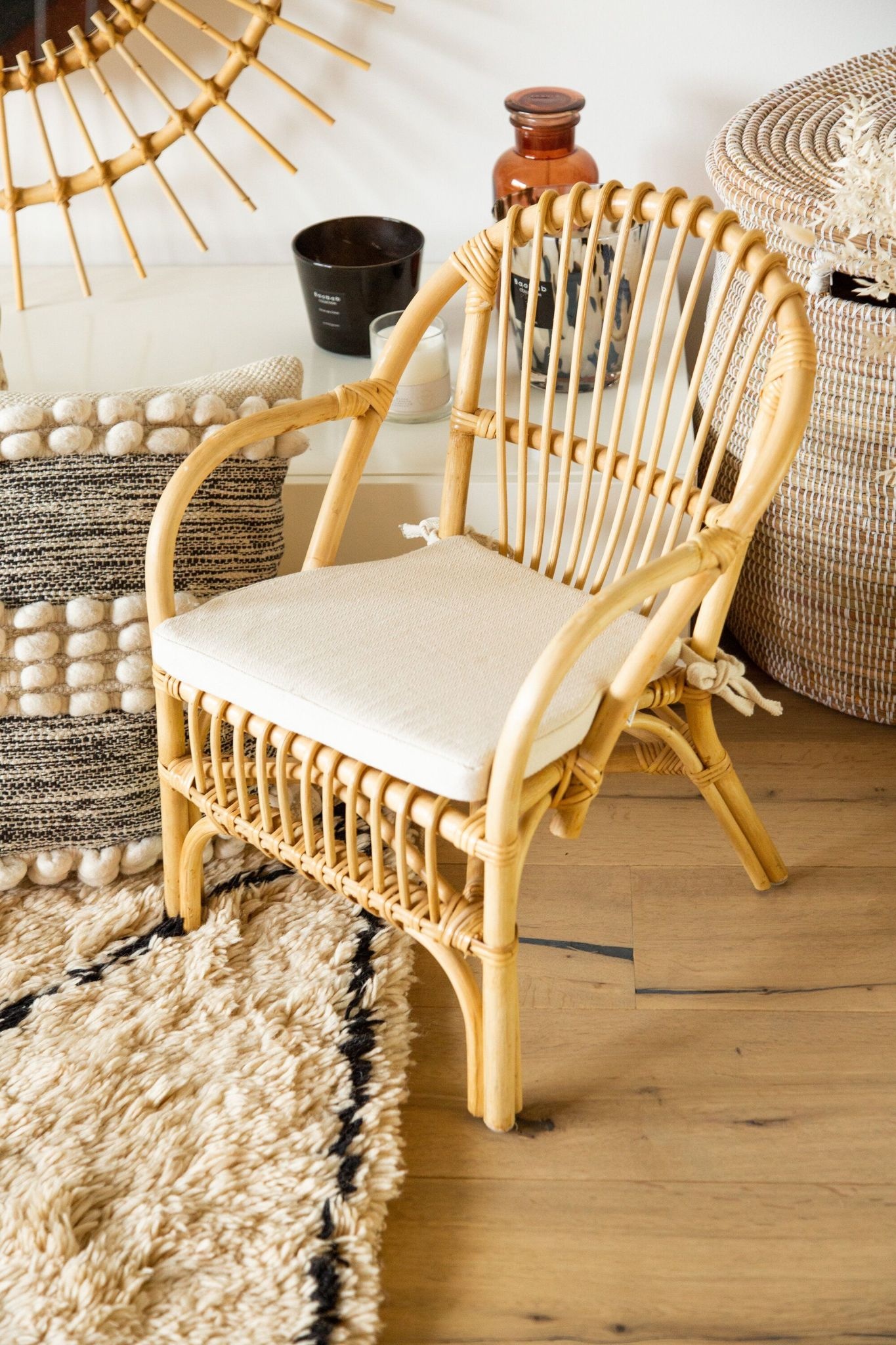 De rotan stoelen uit de jaren 70 zijn helemaal terug van weggeweest. De Montana kinderstoel sluit helemaal aan bij deze stijl en staat prachtig in elk interieur. De kinderstoel is niet alleen hip, maar zit ook nog eens comfortabel met het extra bijgeleverd kussentje. De stoel is een lichtgewicht en is gemakkelijk te verplaatsen. Het is de perfecte decoratie voor in de woonkamer, kinderkamer of speelkamer!