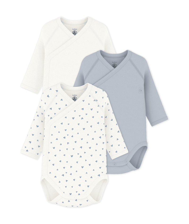 Set van 3 overslagbody’s Lange Mouwen - Blauw - Petit Bateau