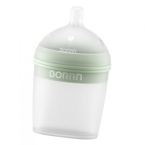 De silicone babyfles van Borrn is veilig, duurzaam en enorm praktisch. De binnenkant bestaat volledig uit siliconen en er is gegarandeerd geen enkel punt waar de melk het plastic raakt. Borrn werkt voortdurend aan het verbeteren van het product. Het ultieme streefdoel: een fles die je baby gegarandeerd vrij van krampjes maakt. Ze zijn goed op weg met het antikolieksysteem dat het slikken van lucht tot een minimum beperkt. Dankzij de brede hals benadert deze fles het natuurlijke borstvoedingsgevoel. Daarom is deze fles ideaal om borst- en flesvoeding te combineren of om over te schakelen van borst naar fles. Op de fles staat een handige maatverdeling.